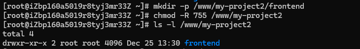 前提:远程服务器的/www/my-project 目录里存放了第一个项目的前后端文件。