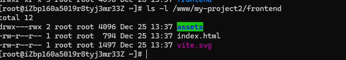 将新前端打包后的dist文件(如 index.html、static 等)上传到 /www/my-project2/frontend 目录。