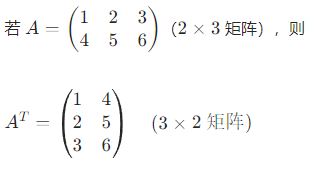 的第 i 行第 j 列元素等于 A 的第 j 行第 i 列元素,即: