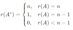 伴随矩阵的秩: