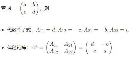 关键注意:A∗ 的第 i 行第 j 列元素是 A 的第 j 行第 i 列元素的代数余子式 Aji。