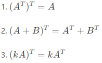 设 A,B 为可运算的矩阵,k 为常数,则: