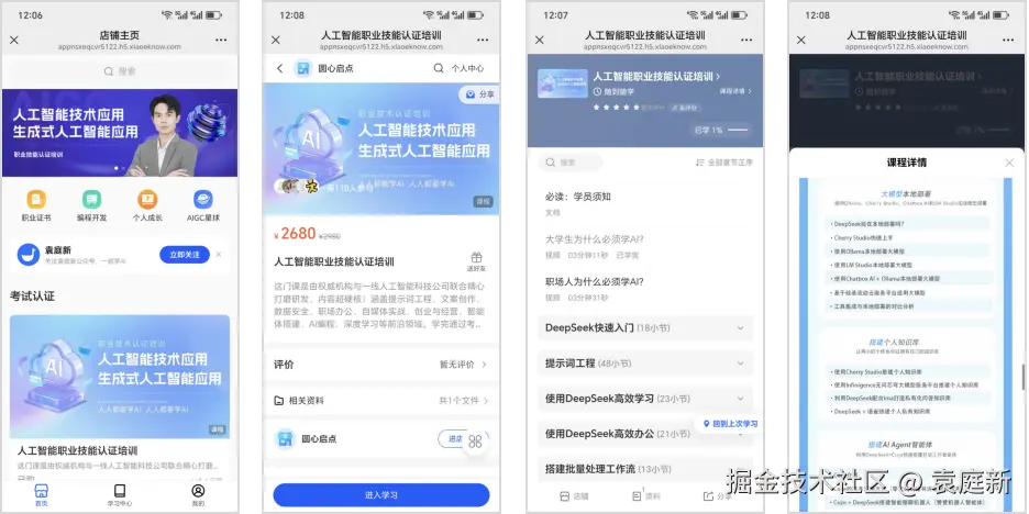 在AI技术飞速迭代的当下,各大科技巨头企业在不断实现技术突破,AI已深度重构各行业工作模式、并融入我们的日常生活。为帮助千行百业的从业者们紧跟技术浪潮、筑牢职场竞争力,以及推动人工智能技术应用的知识普及,因此创建了「圆心AI」知识店铺,助力学员在数字时代抢占先机。店铺长这个样子,见下图: