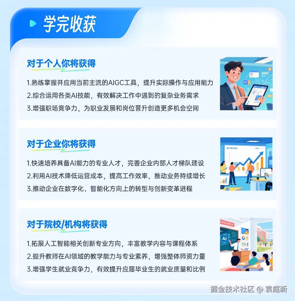 想象一下,未来30年、50年或100年后由AI驱动的世界,会是怎样的?我不知道。我深信,掌握AI技能是当下的必修课,而学习过程中更会解锁许多意想不到的收获。不管是个人发展、企业升级,还是院校与机构的创新,AI都能带来实实在在的助力。