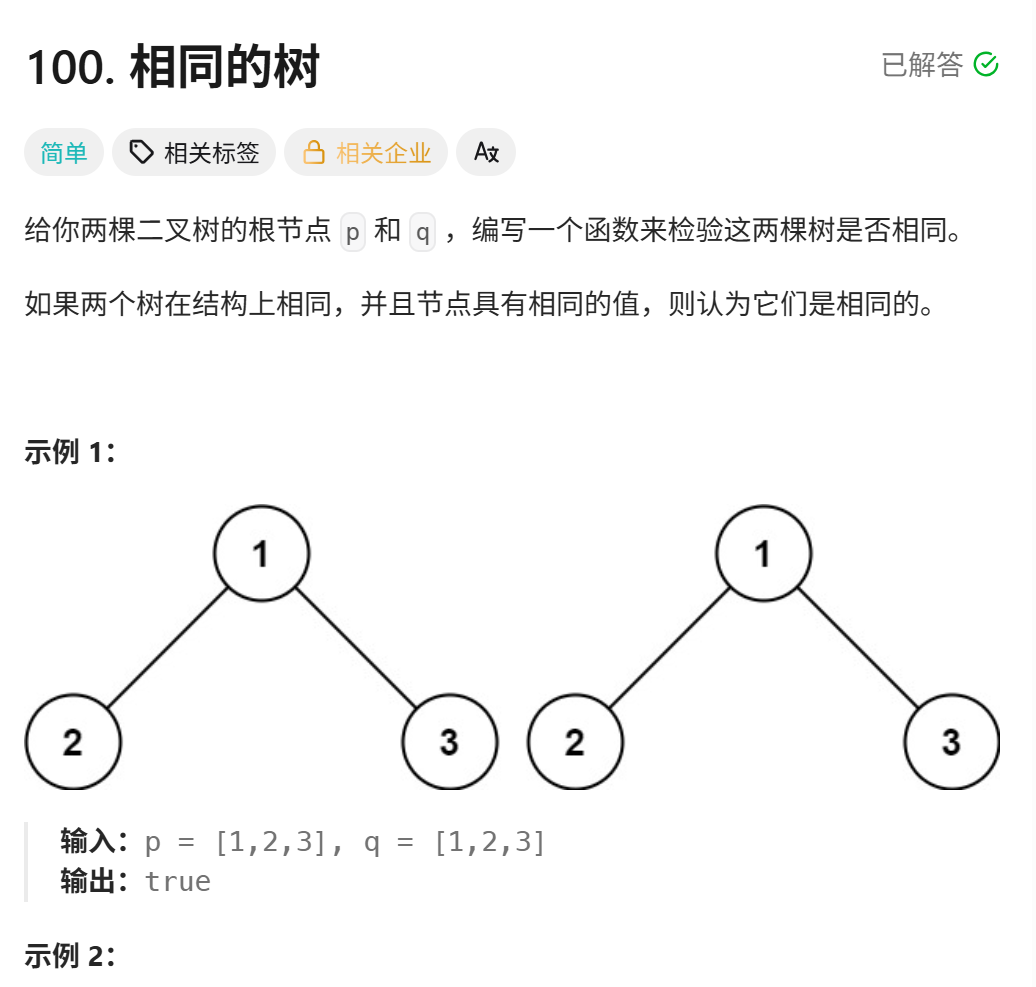 public boolean isSameTree(TreeNode p, TreeNode q) {