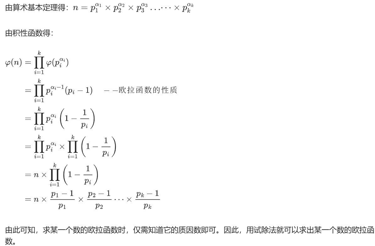 // 欧拉函数性质:若p是x的质因数且x = p^k * m(m与p互质),则φ(x)=p*φ(m)