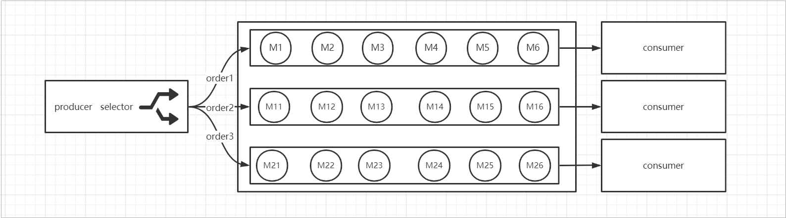 保证这个MessageQueue只有一个消费者不被并发处理 ,这个需要使用到 MessageQueueSelector 来保证同一个订单的消息在同一个队列
