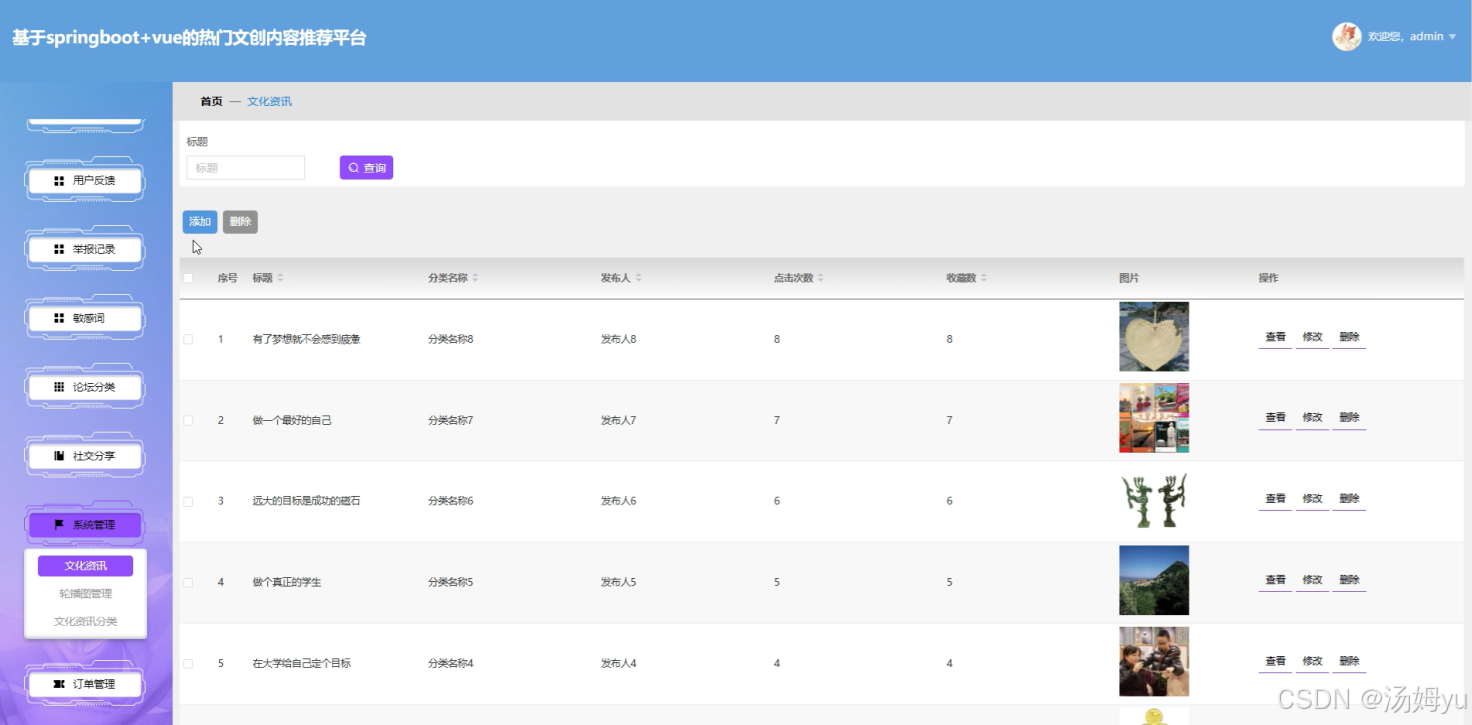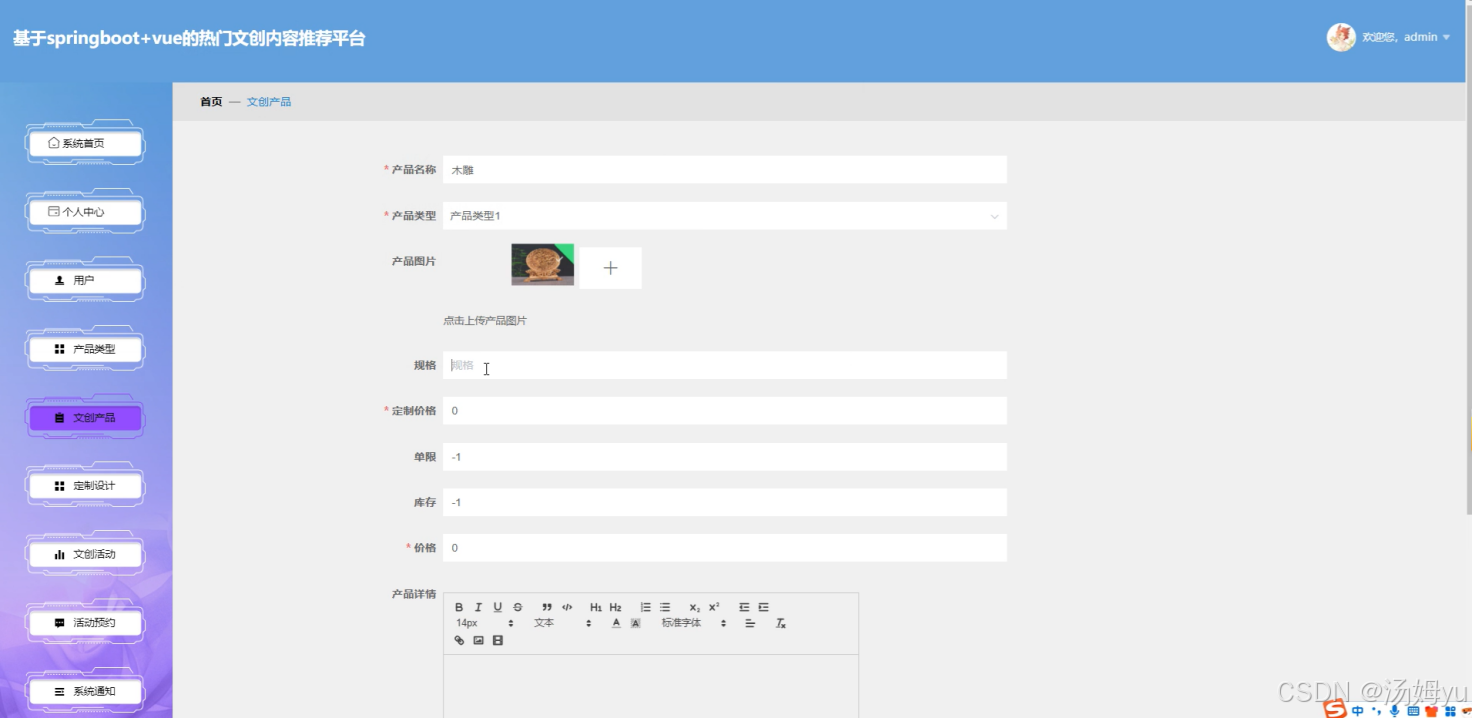 从理论意义来看,本研究为文创产业与信息技术的融合提供了新的研究视角和实践案例。通过对springboot和vue技术在文创内容推荐平台中的应用研究,丰富了相关技术在文化产业领域的应用理论,为后续相关研究提供了有益的参考和借鉴。同时,对智能推荐算法在文创内容推荐中的优化与应用研究,有助于完善推荐系统的理论体系,为提高推荐系统的准确性和效率提供新的思路和方法。
