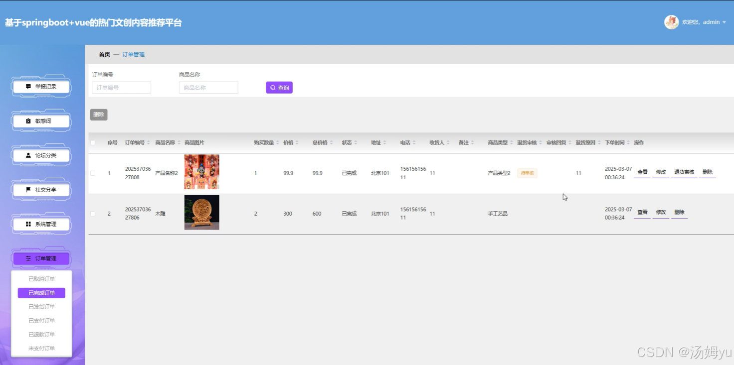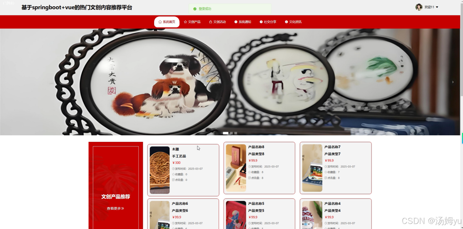 本研究旨在构建一个基于springboot+vue的热门文创内容推荐平台,运用先进的技术架构与智能推荐算法,深度剖析用户的行为数据,精准把握用户的兴趣偏好,从而实现个性化的文创内容推荐,为用户提供更加优质、高效的服务体验。这一平台的搭建,不仅有助于解决当前文创平台内容推荐存在的问题,还能推动文创产业的数字化转型,具有重要的现实意义和应用价值。