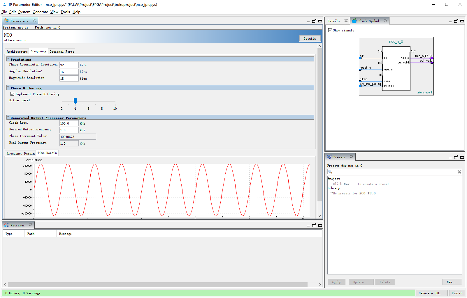 上一篇的锁相环的配置是基于Intel公司的Altera-FPGA的,是Intel公司将已经写好的例程植入到Quartus的软件当中的用户可直接使用的模块程序。这次的正弦信号合成也是类似的。