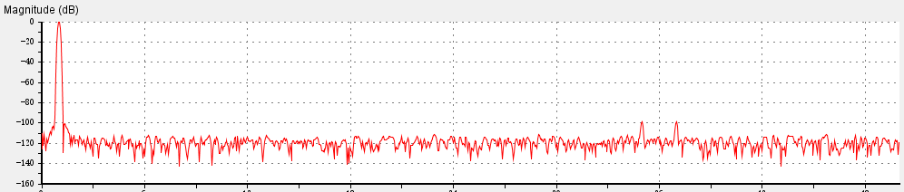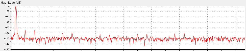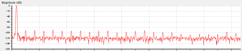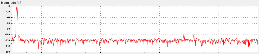 一般情况下,generation algorithm(生成算法)选择的是small ROM,因为这个比较平衡;当需要较好的波形状况的时候,并且不担心内存资源占用的情况下,选择large ROM;当资源极度紧张的情况下,用cordic;利用DSP乘法器进行独特的运算,来匹配特殊的目标,选择Multiplier-Based。四种运算方式的幅频特性曲线分别如下四图所示。从这四张图的幅频特性曲线中就能看出,从精度的角度来说,large ROM ≈ multiplier-based > small ROM > cordic。
