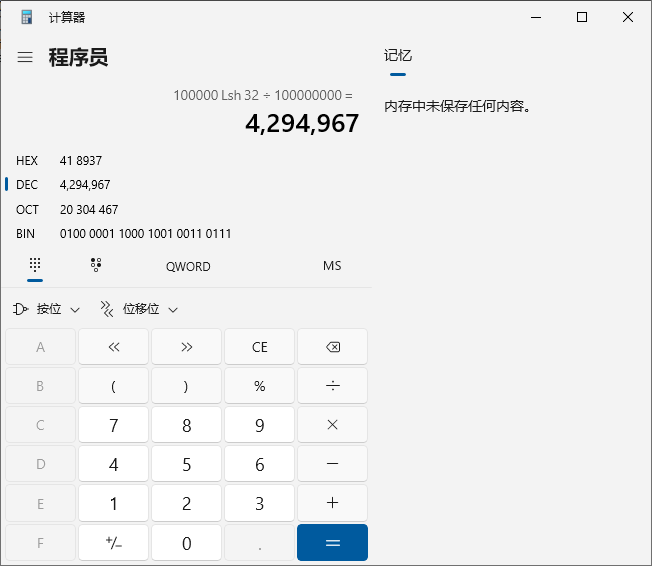 用程序员计算器计算一下频率(相位增量),如下图,结果与系统计算的一样,这也就说明了,想用多大的频率,其实只要更改一下输入时钟的频率、输入的相位增量,就能随便更改输出的频率的。输出的信号相位偏差也是如此。这也就是为什么之前说第一页architecture中的number of channel 和number of bands里面不用太在意,这里都是可以自己随便更改频率大小,输出通道数也可以用多次实例化来解决。