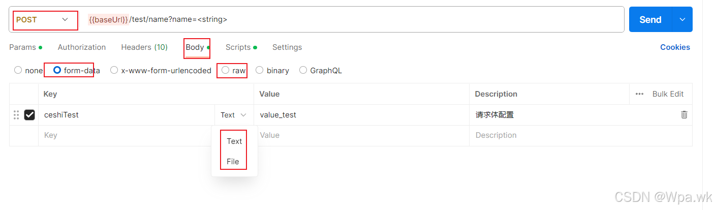 raw-原生,可以指定格式 - 文件格式:Body-->form-data-->File
