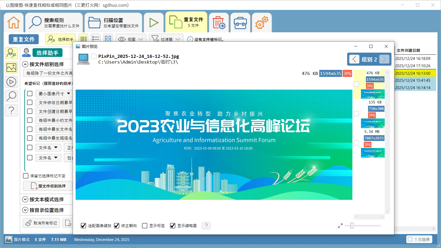 最怕删错珍贵回忆!它自带并排对比预览窗,两张图放大并排看,细节差异一目了然。还能显示拍摄时间、尺寸等参数,帮你快速决定留哪张。