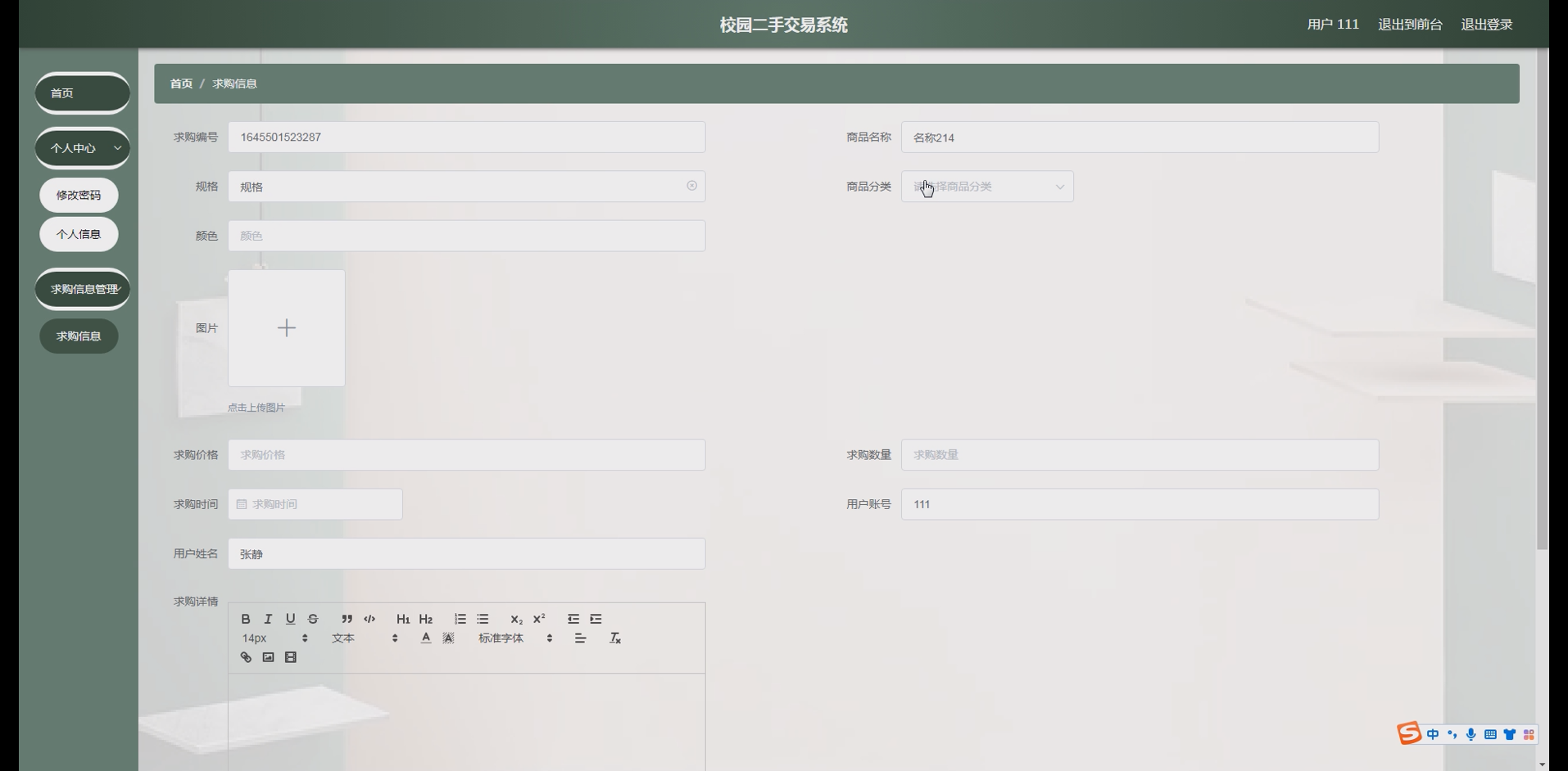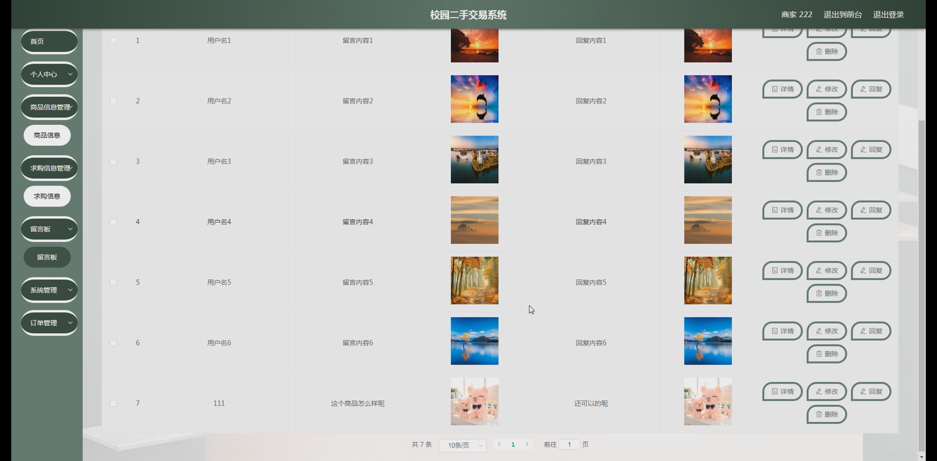 系统项目功能:用户,商家,学校,商品分类,商品信息,求购信息