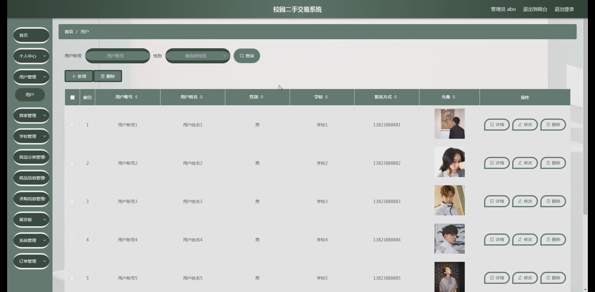 学校管理员拥有平台监管权限,包括用户与商家资质审核、商品信息审核(杜绝违规商品发布)、交易纠纷调解、系统公告发布(如交易规则、安全提示)、平台数据监控等功能,保障校园交易环境的规范与安全。