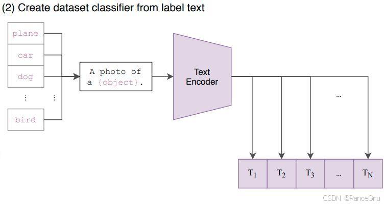 - 将n个文本输入经过 Text Encoder文本编码器转换为一组数值向量,表示为 T1, T2, ..., TN。