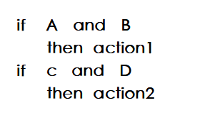 用例:A=T、B=T、C=T、D=F(触发action1和action2) |