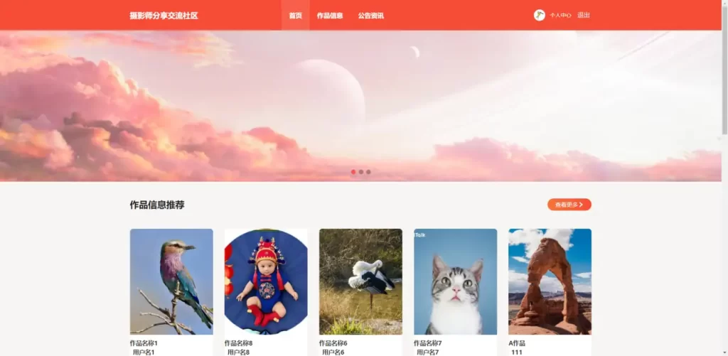 - 主页浏览:查看最新作品动态、热门摄影师推荐、轮播图公告等