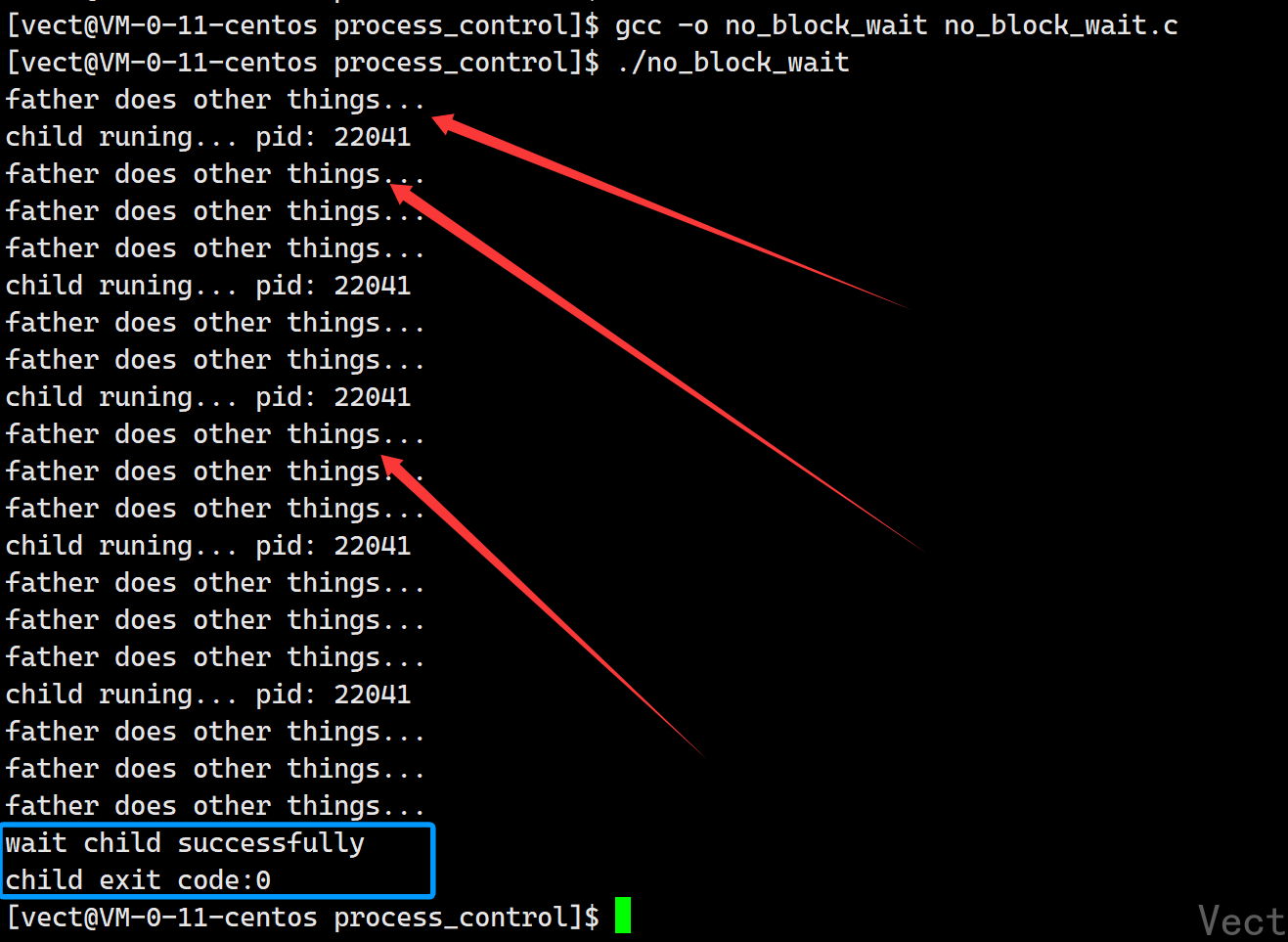[vect@VM-0-11-centos process_control]$ gcc -o block_wait block_wait.c