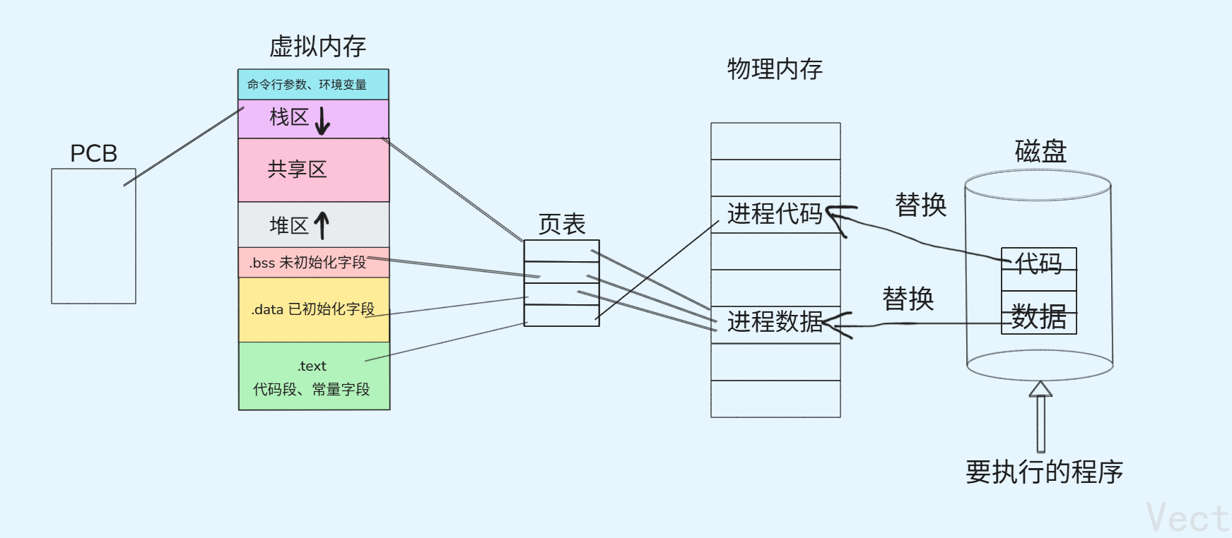 进程程序替换之后,该进程对应的PCB、进程地址空间及页表等都没有发生改变,仅仅改变进程在物理内存中的代码和数据,所以没有创建新的进程,并且进程程序替换前后该进程的pid没有改变