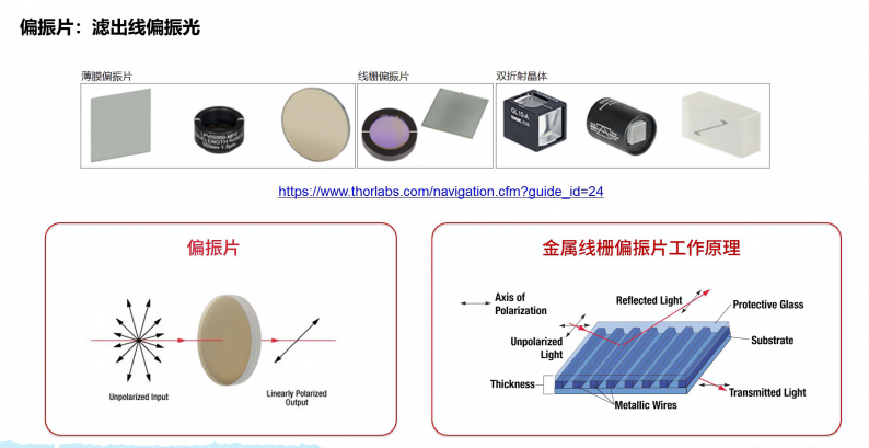 功能定位:筛选特定方向的线偏光,核心类型包括薄膜偏振片、线栅偏振片、双折射晶体偏振片。
