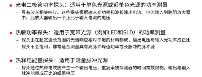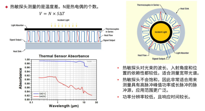 | 热敏探头 | 基于热电效应,温度差转化为电压差 | 对波长、入射角、位置依赖性低,无饱和现象,适配宽带/高脉冲功率测量,响应时间长 |