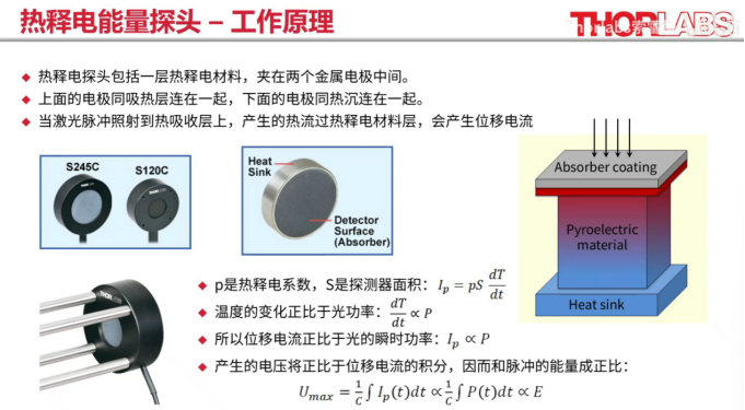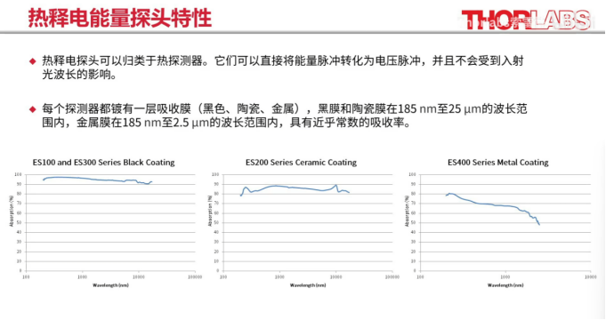 | 热释电能量探头 | 激光加热导致介电材料电荷重分布,产生位移电流 | 能量脉冲直接转换为电压脉冲,波长不敏感,需搭配吸收膜(黑膜 / 陶瓷 / 金属膜) |