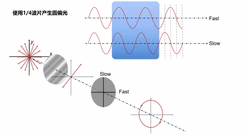 **1/4 波片:**将线偏光转换为圆偏光,或反之,是偏振态转换的核心器件。
