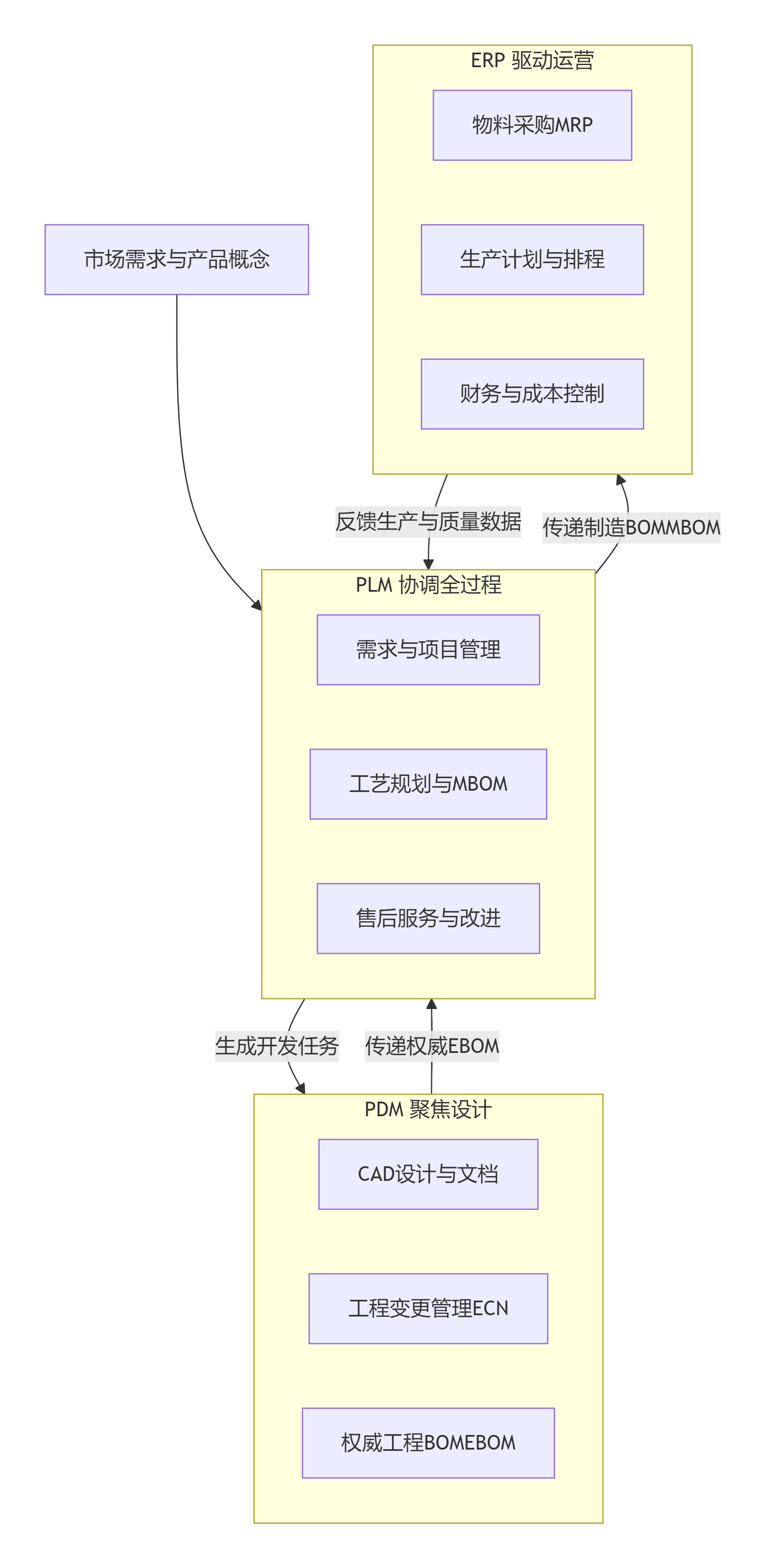这背后,反映的是对制造业数字化体系中几个核心概念------PDM、PLM与ERP------在边界与协同关系上的普遍困惑。清晰理解这三者的本质差异与内在联系,是企业构建高效数字化架构、制定前瞻性战略的关键基础。
