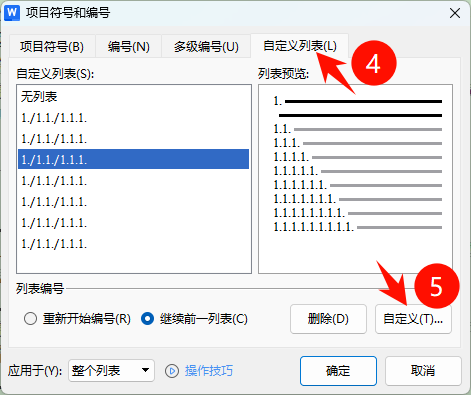 接着在弹出的窗口里找到【自定义列表】选项,点击下方的【自定义】按钮,进入详细设置界面。