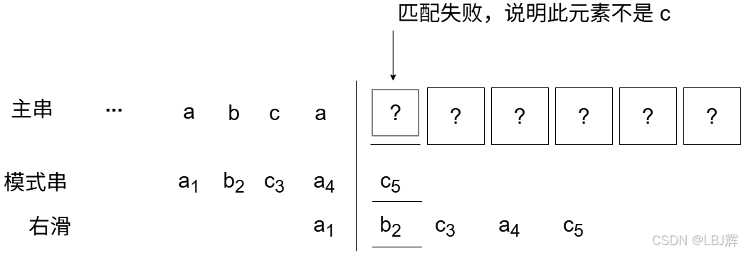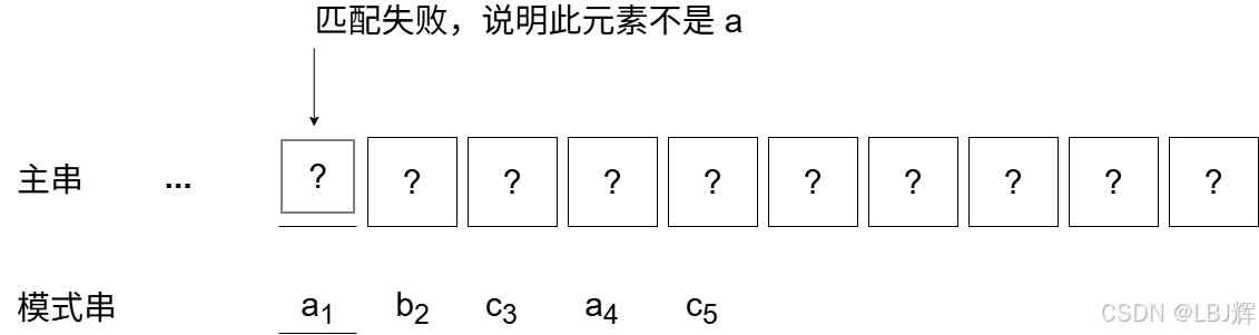 当模式串已匹配相等序列中不存在满足上述条件的子串时(可以看成 k = 1),显然应让主串第 i 个字符和模式串的第一个字符进行比较。