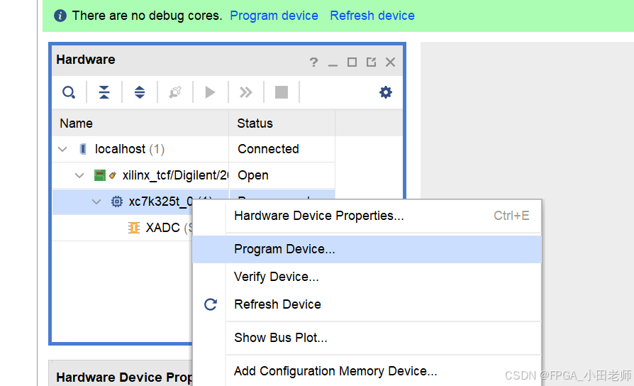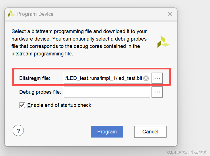 **第四步:**选择bit文件,一般打开之后默认就有了,点击Program,等待下载完成即可