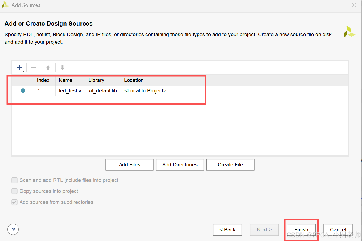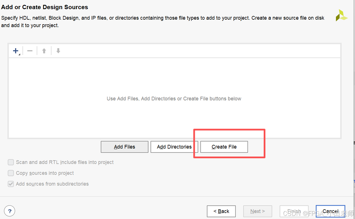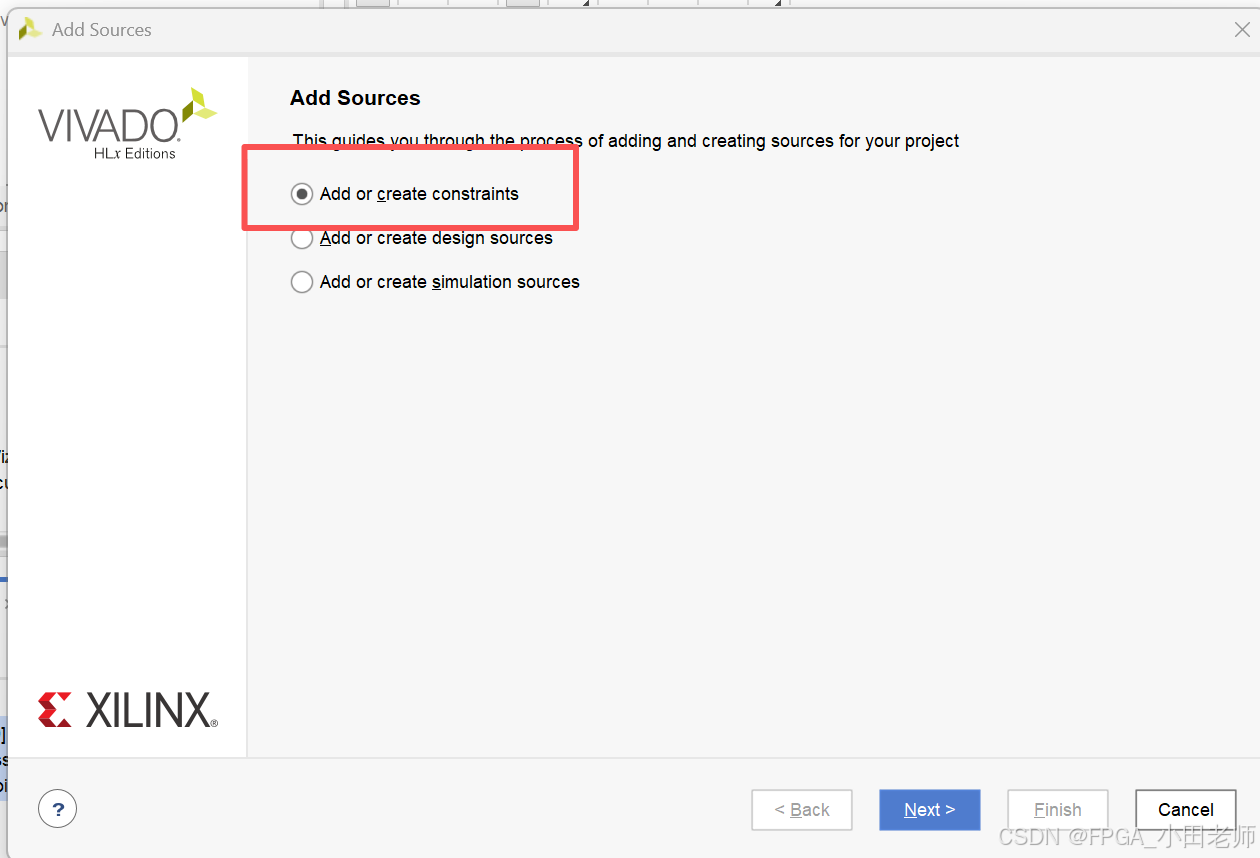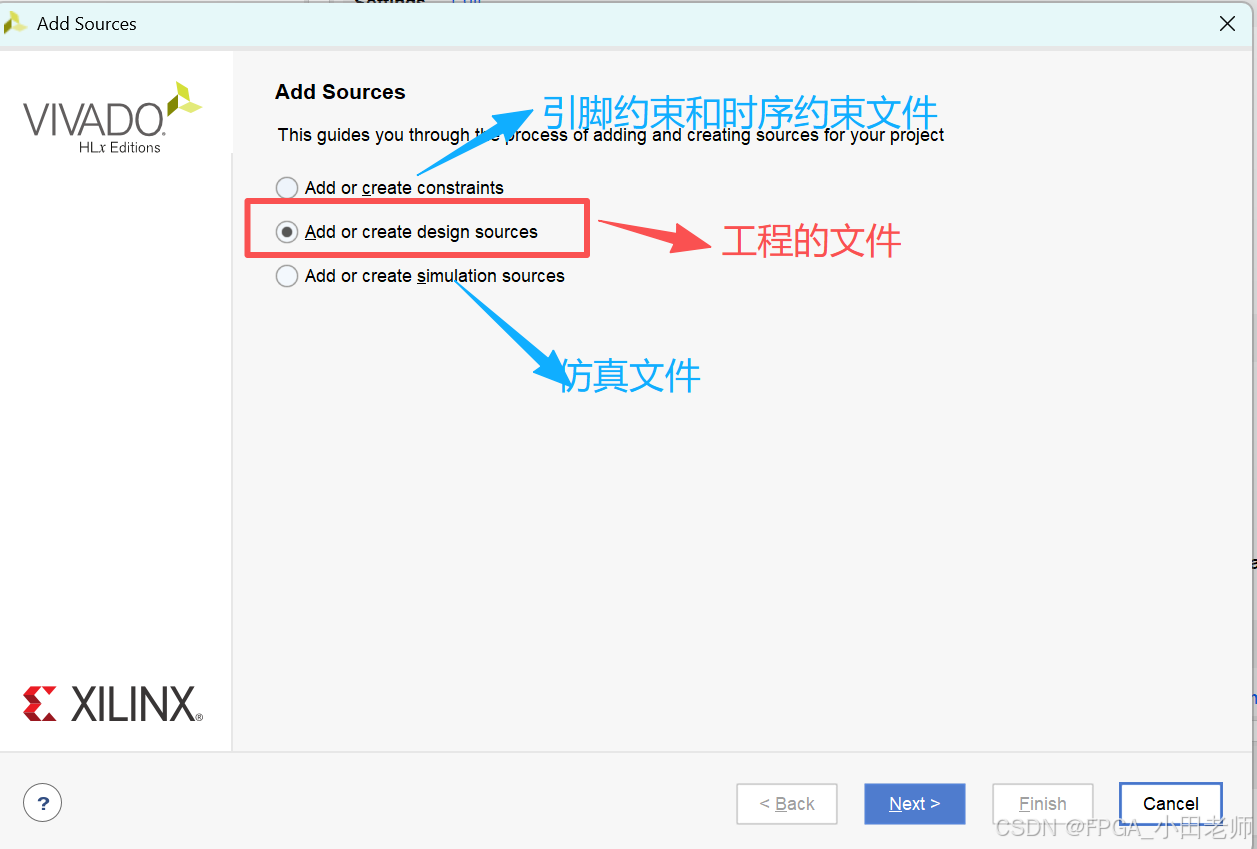 **第一步:**单击Add Sources,选择Add or Create design sources,点击Next