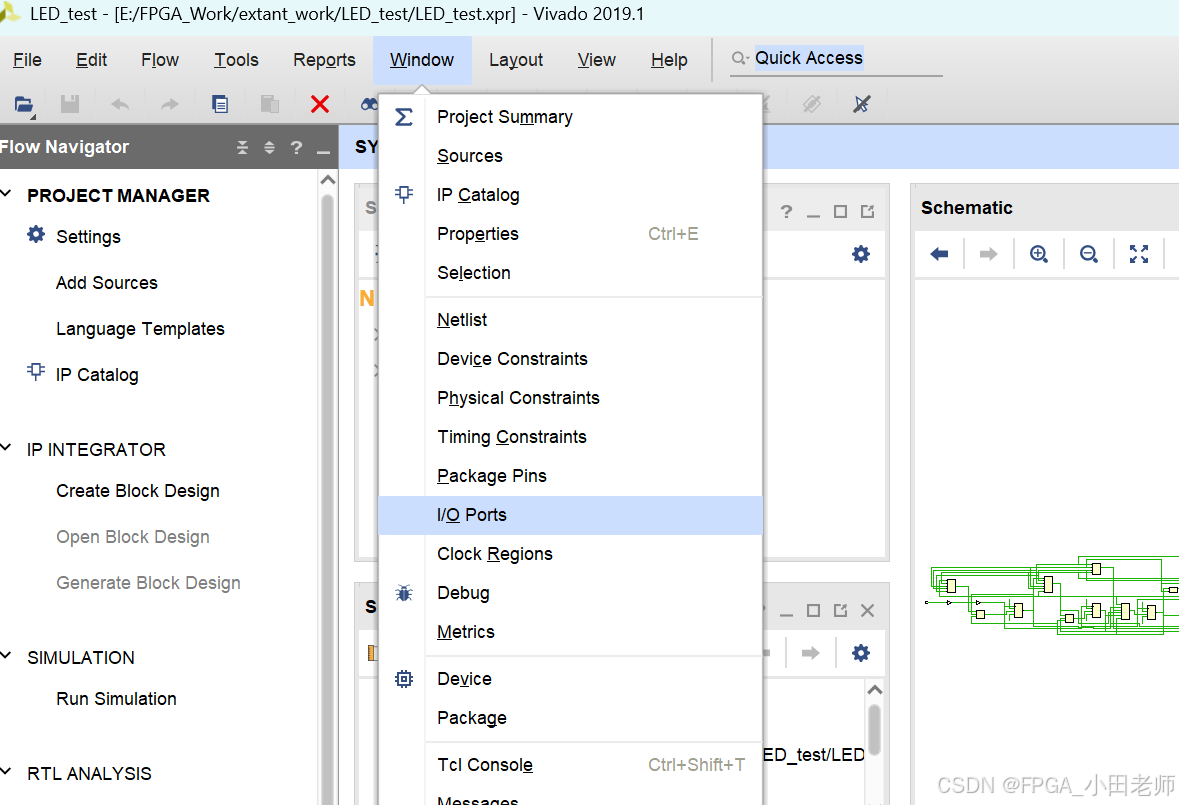 **第二步:**打开之后Synthesized Design之后点击Windows-->I/O Ports