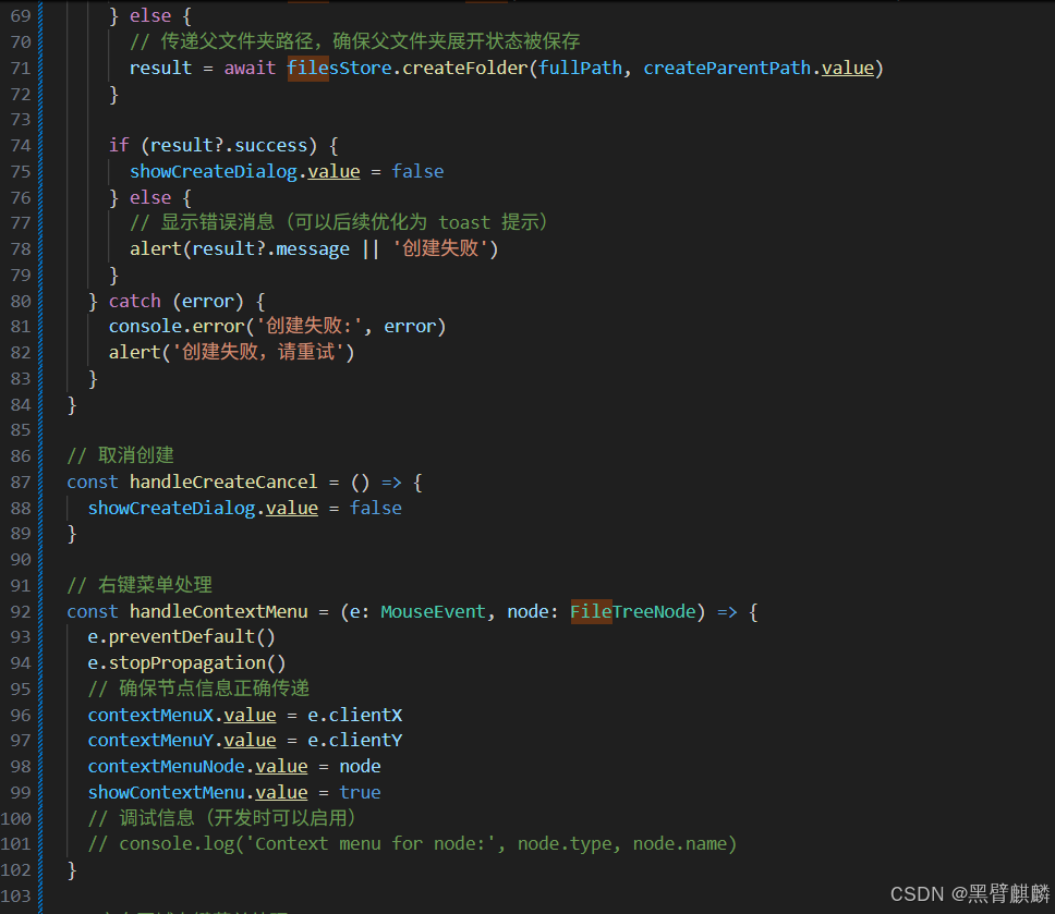 文件操作后(创建、删除、重命名),需要重新加载文件树。但直接重新加载会导致所有文件夹都折叠,用户体验不好。