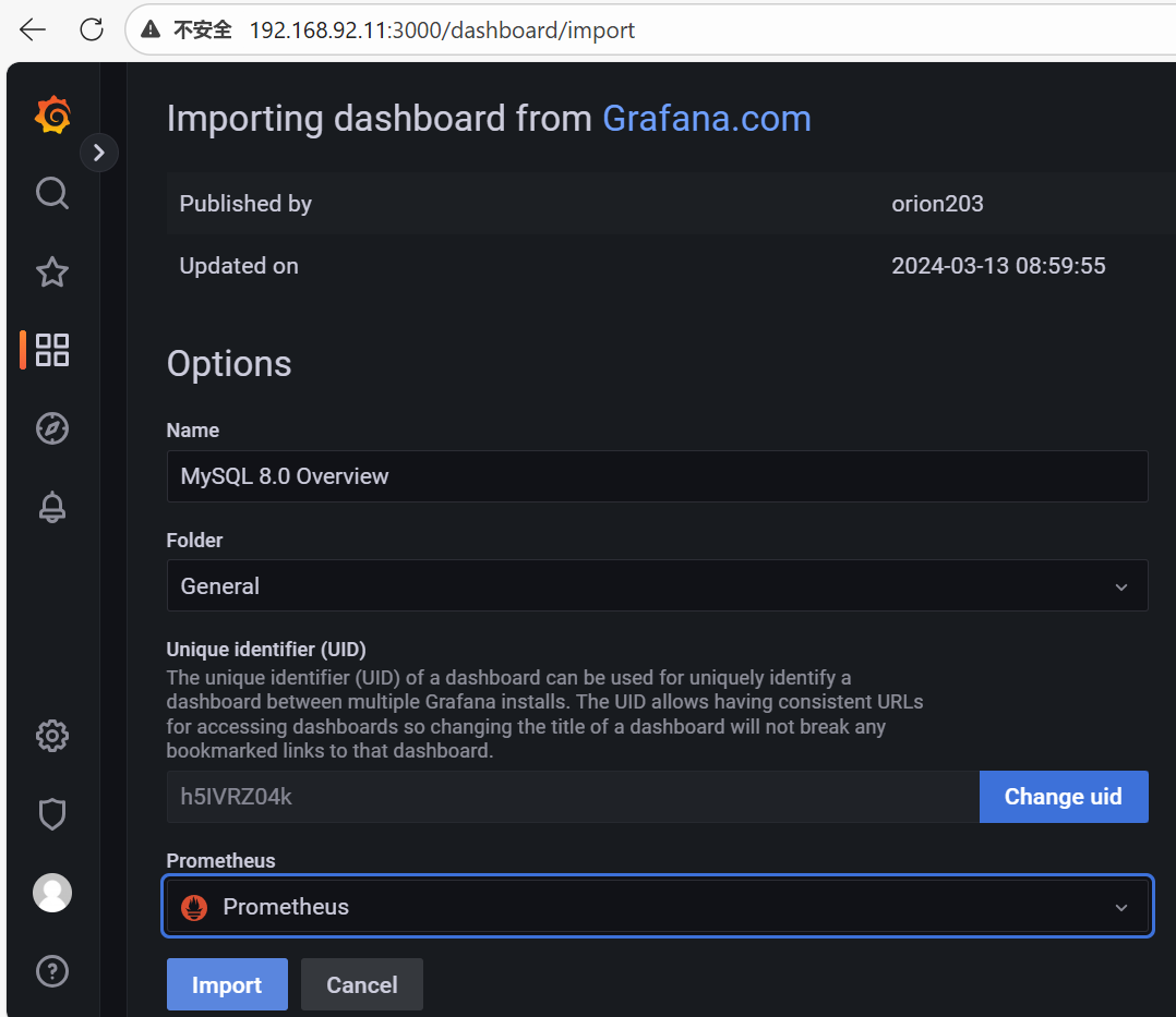 copy id to clipboard->grafana的dashboards中Import dashboard