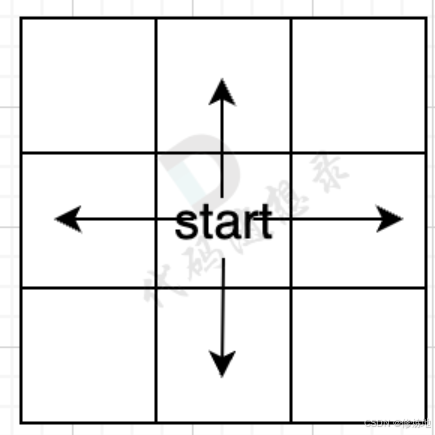 广搜的过程就是给出一个start起始位置,从上下左右四个方向走出第一步。