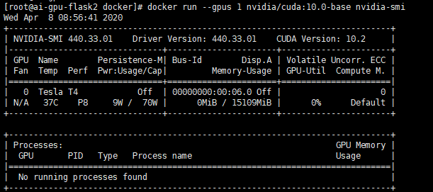 $ docker run --gpus all nvidia/cuda:10.0-base nvidia-smi