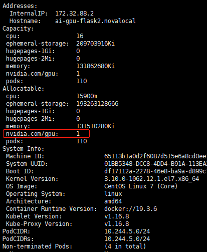 | centos7.6 | ai-gpu-flask2.novalocal | worker | kubeadm v1.16.8 |