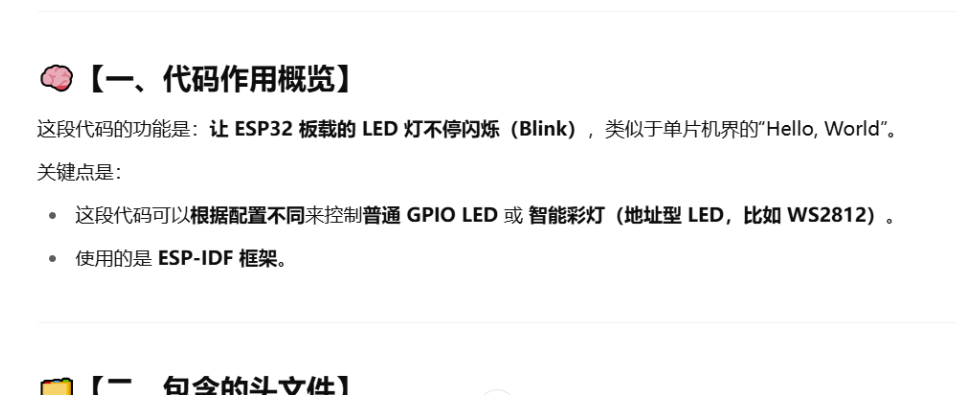 通过提示词给到GPT 让他帮我详细讲解一下。因为之前都是使用Arduino编程。对这个不熟悉。AI很给力。