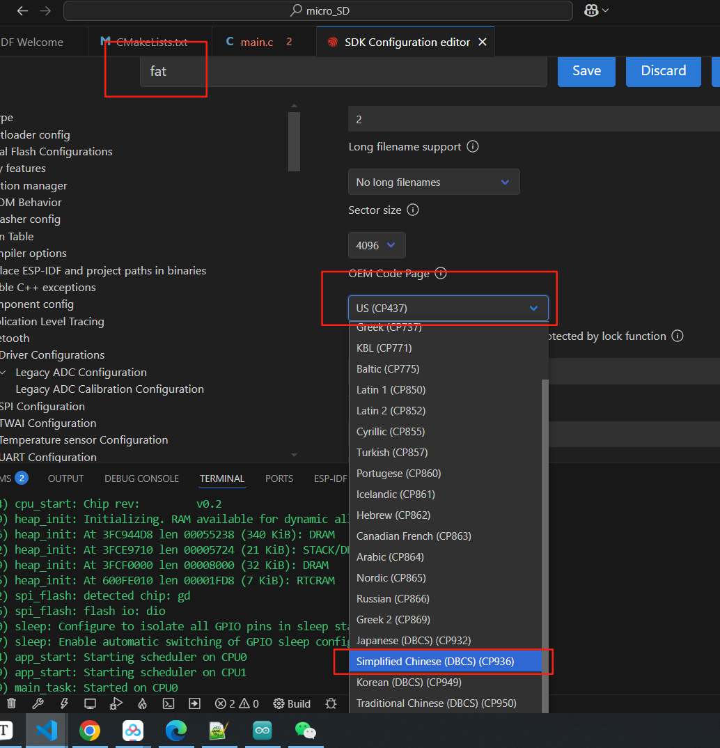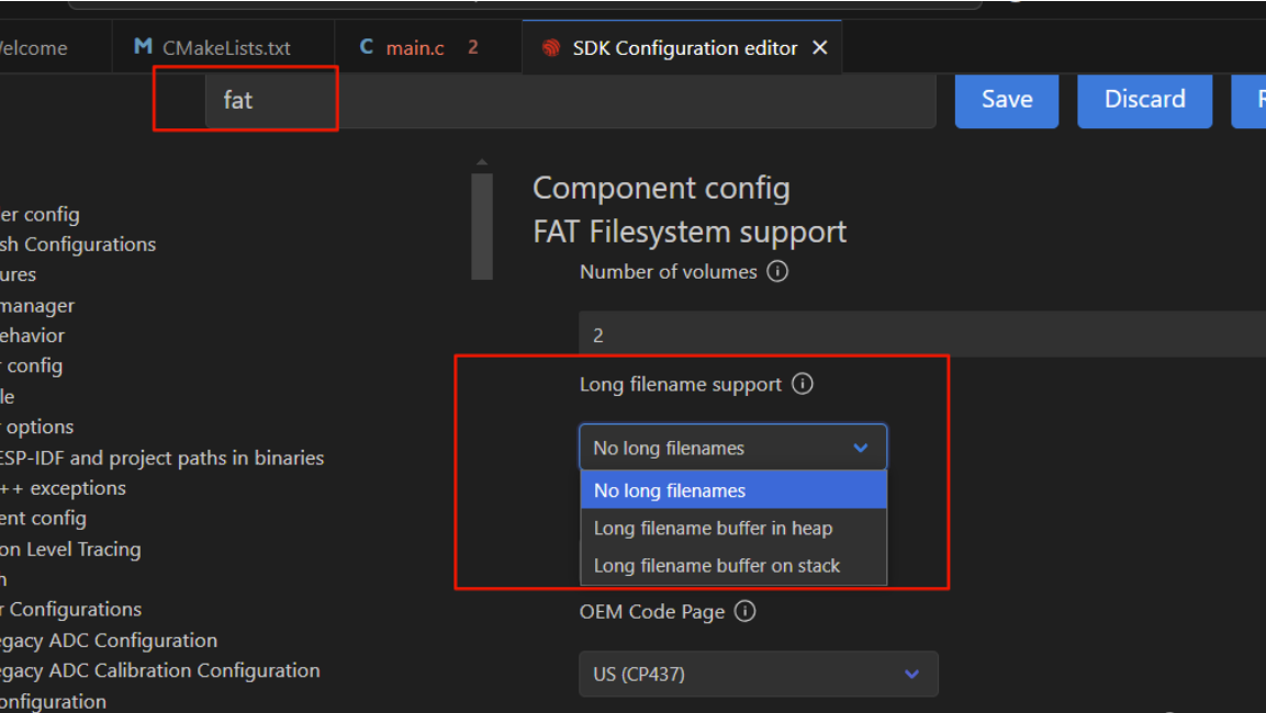 默认sd卡不支持长文件名。超过8个字符会产生错误,如果想要支持长文件名、文件名支持中文,文件内容支持中文,需要更改menuconfig