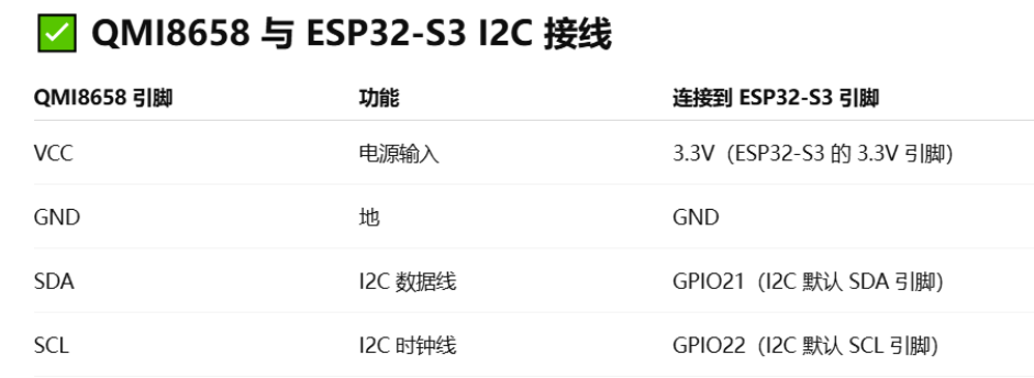 外接了淘宝买的qmi8658芯片 ,接线如下图所示。