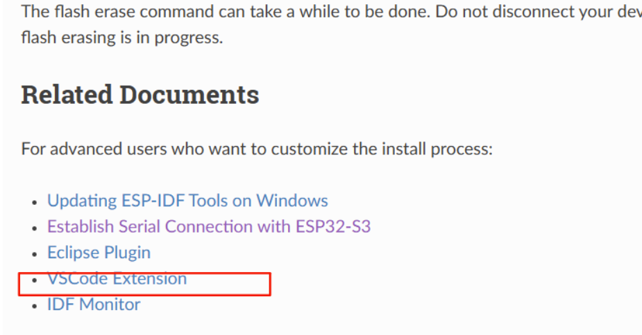 但是仔细阅读上述代码和详细过程,发现不太对。这个是用ESP-IDF原生的编译环境开发。和VS Code的不太一样。还好在这个文档的末尾给出了参考资料,其中有VS Code的使用教程。https://github.com/espressif/vscode-esp-idf-extension