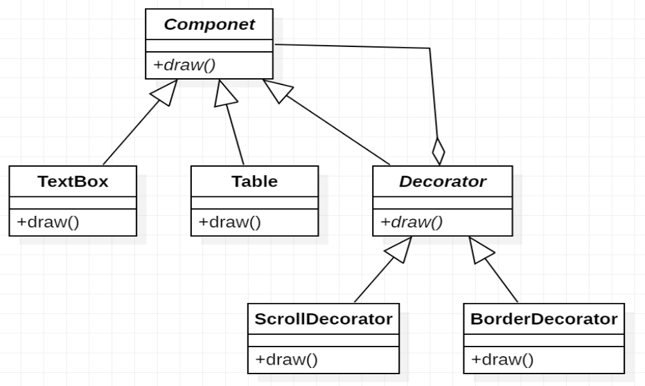 javapublic void draw(){ component.draw(); System.out.print(" drawScroll"); }