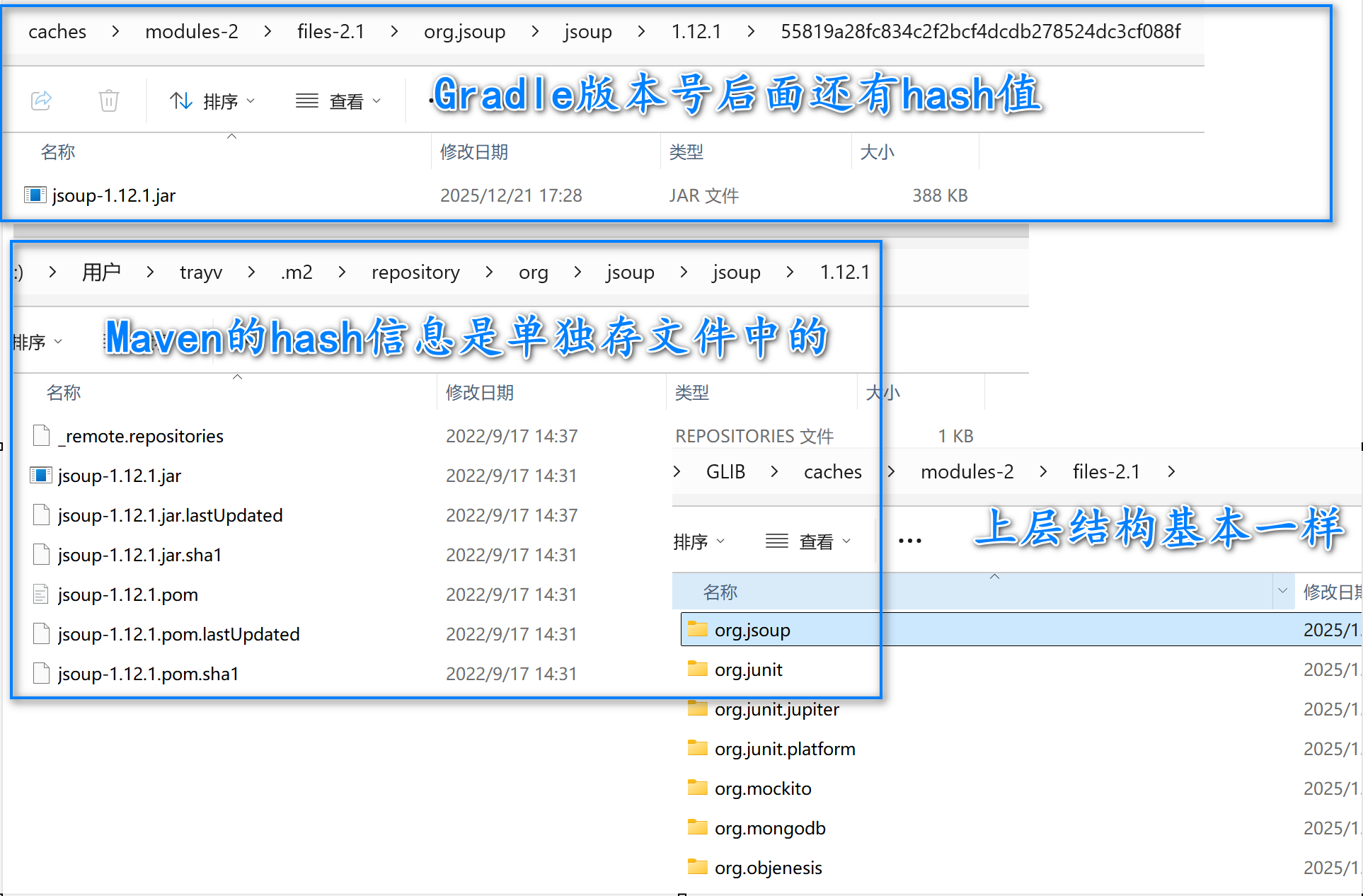个人感觉还是Maven的设计方式更合理一些,Gradle的方式如果哪天想要升级Hash算法,那不完犊子了嘛,虽然也容易解决,但是肯定会是给麻烦。