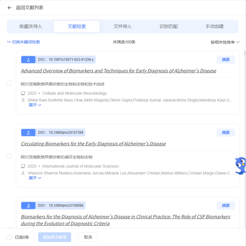 - 关键词检索:你可以手动设置关键词进行精准查找,系统默认筛选近十年的文献,保障综述的时效性。
