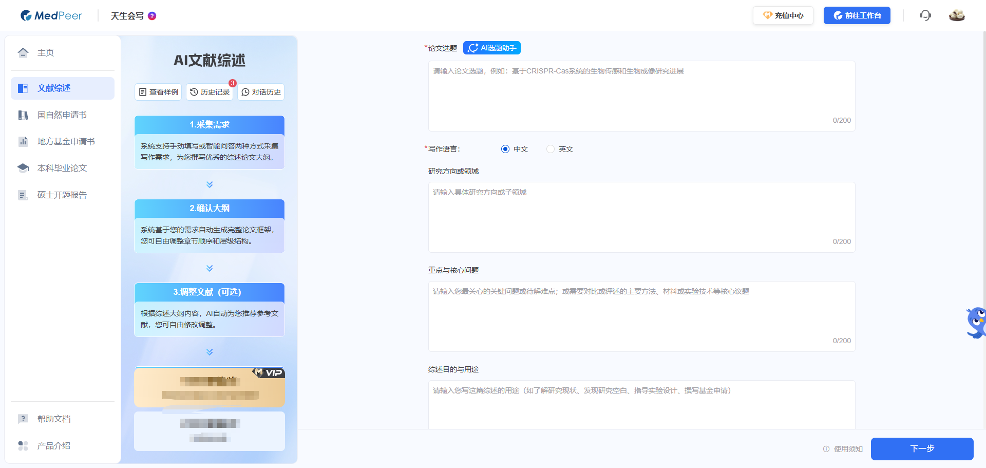 二、 工具拆解:MedPeer AI文献综述如何"三步"重塑写作流程?