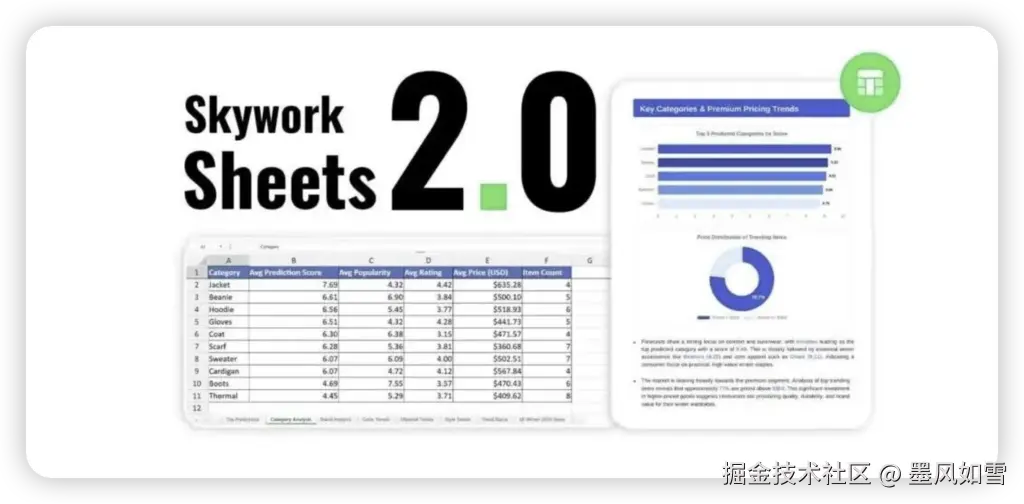 Skywork Sheets 2.0把这个逻辑倒过来了。官方管这叫"输入即分析,数据即成果"。