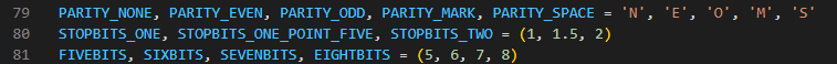 检验,停止位,数据位参考:自己安装目录下的python\Lib\site-packages\serial\serialutil.py